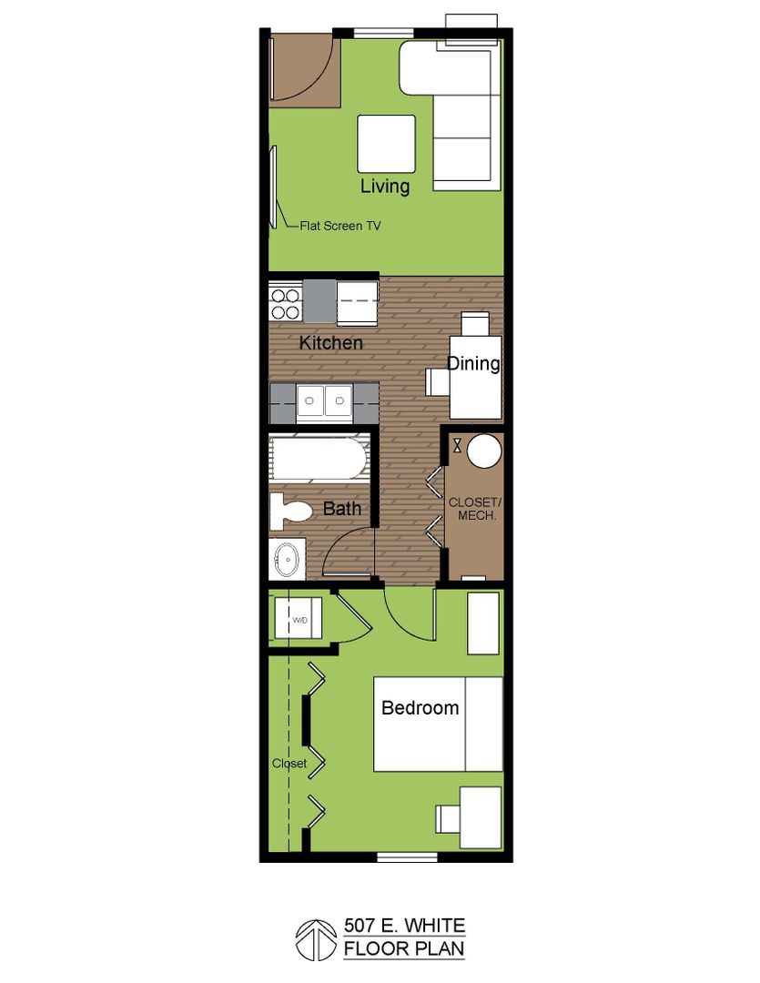 These convenient upper-floor 1-bedroom apartments are fully furnished and include in-unit laundry. Enjoy spacious apartments with large closets, just blocks from County Market and the University of Illinois Engineering Quad.
