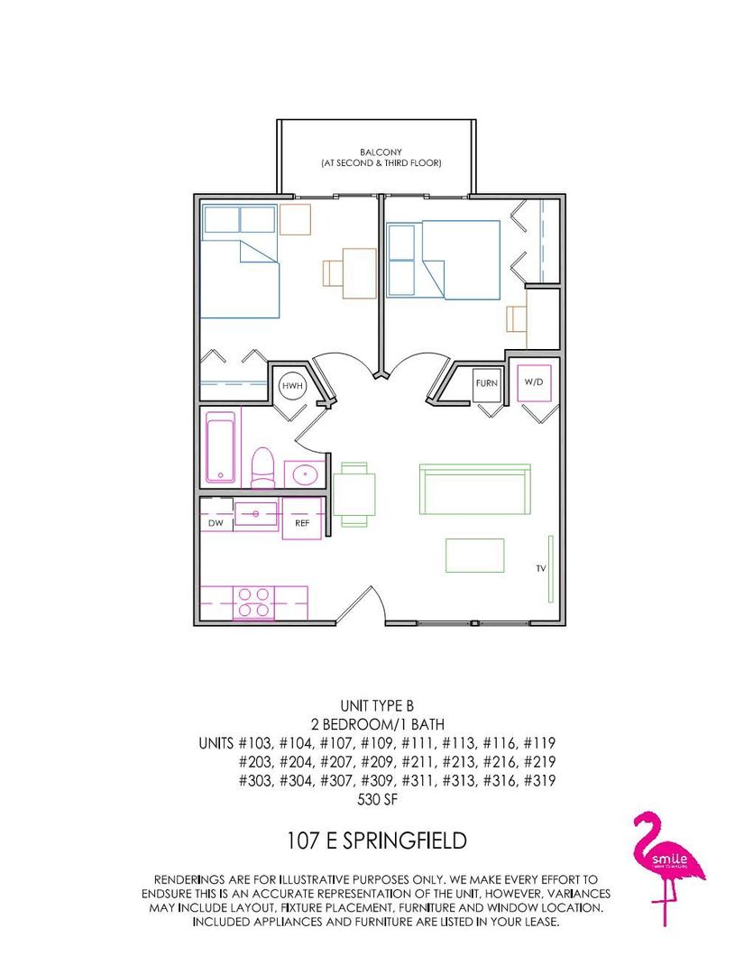 107 Springfield features newly remodeled 2-bedroom apartments near the UIUC campus in Champaign, close to Green Street shops and dining, County Market, Helms Park, and Scott Park. Units include in-unit laundry for your convenience.