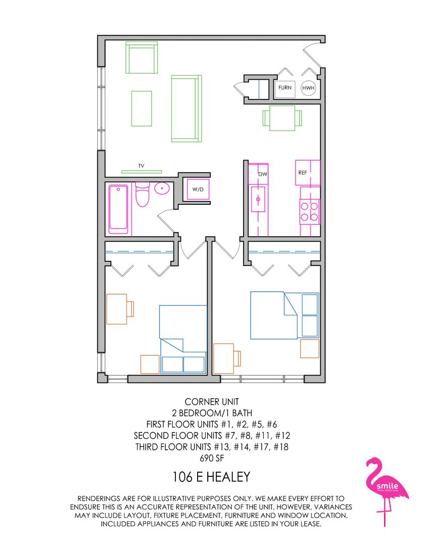 Spring Lease! This newly remodeled 2-bedroom apartment near the UIUC campus in Champaign is close to Green Street's shops and dining, as well as County Market and Scott Park. Remodels include in-unit laundry, vinyl plank flooring, new kitchens with stainless steel appliances and quartz countertops, and updated carpet, paint, and fixtures throughout.