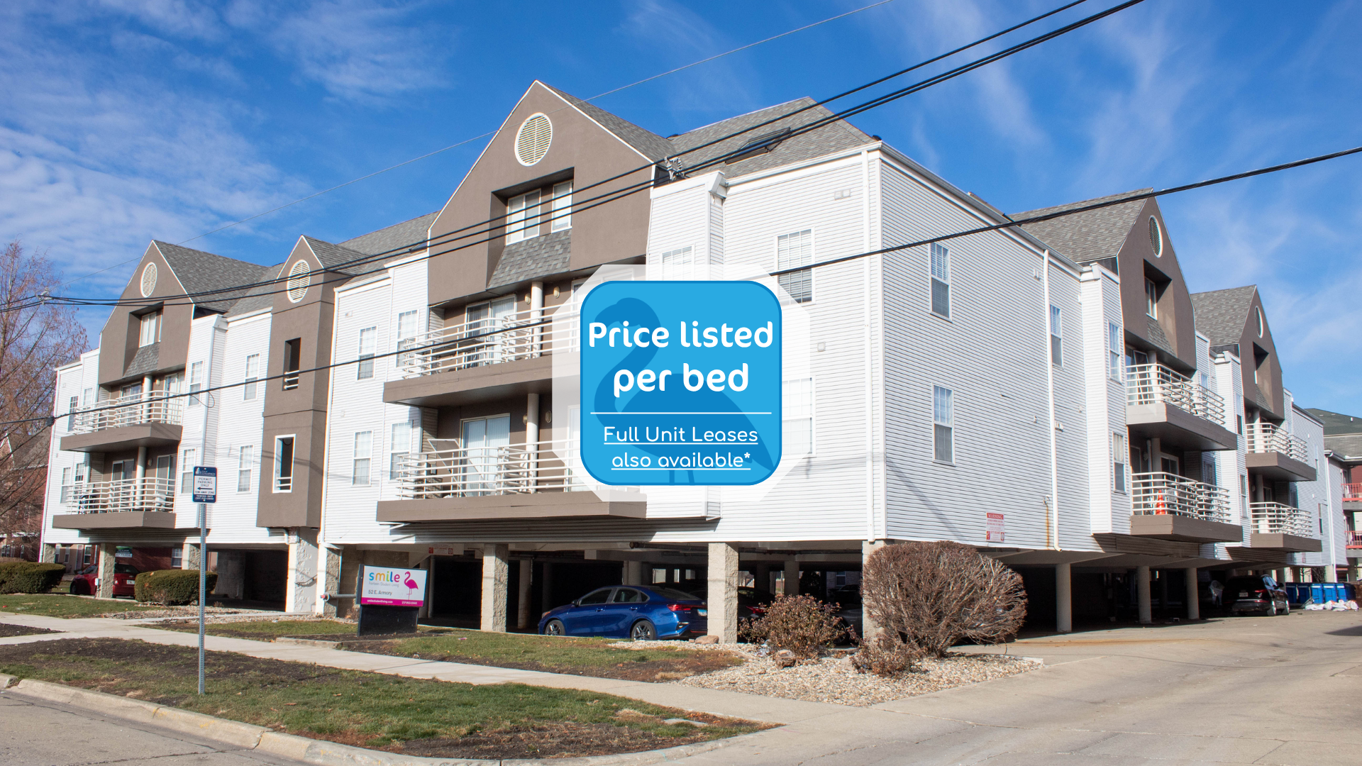 Prices displayed are for individual leases. This property offers both individual and joint and several leasing options. Please contact Smile Student Living for more information.