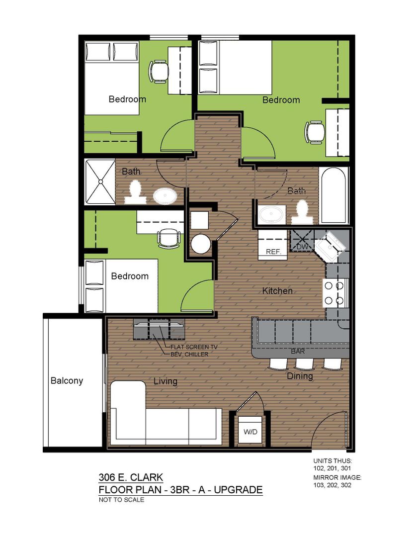 SPRING LEASE! Lease a spacious 3-bedroom, 2-bath apartment near the University of Illinois campus, close to classes, restaurants, County Market, and the Engineering Quad. Units feature plank flooring, granite countertops, stainless steel appliances, a Smart TV, and in-unit laundry for your convenience.